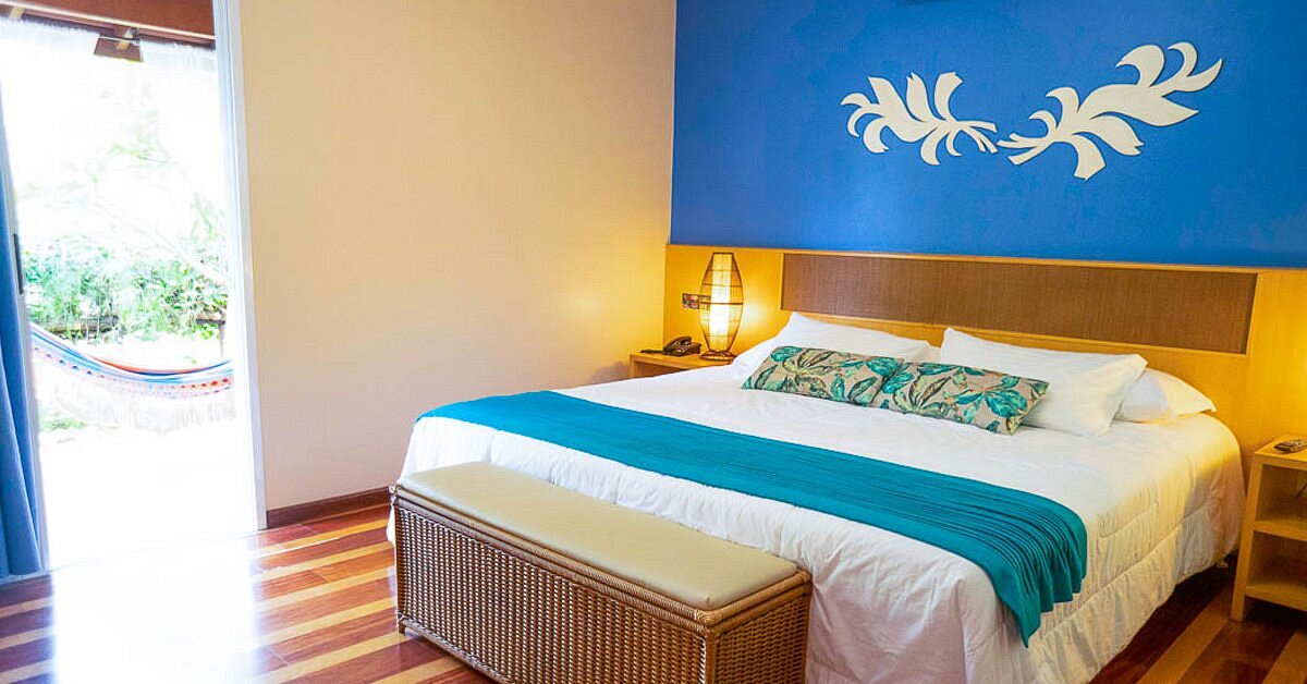 Ambientes projetados para proporcionar relaxamento absoluto, com móveis de alta qualidade e detalhes que elevam a experiência de hospedagem.